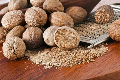 Nutmeg is used as a pain reliever, soothe indigestion, strengthen cognitive functions, detoxify, boost skin health, alleviate oral conditions and it also improve blood circulation.